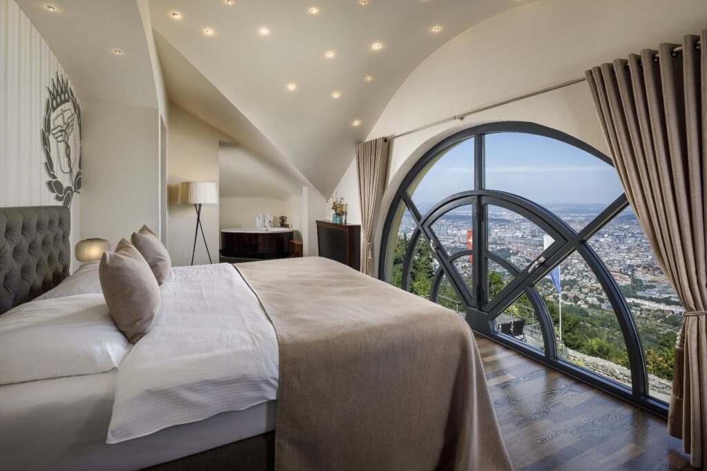 The restaurant serves the finest and freshly prepared dishes and is a popular destination for gourmets, seminar guests and tourists. In addition, a bar awaits you where you can enjoy cocktails and other drinks. After a strenuous day of seminars, you can relax in the steam bath or sauna and leave the day behind you. A 5-star view from the panorama terrace or from the hotel’s own 70-meter-high tower round off the seminar day.